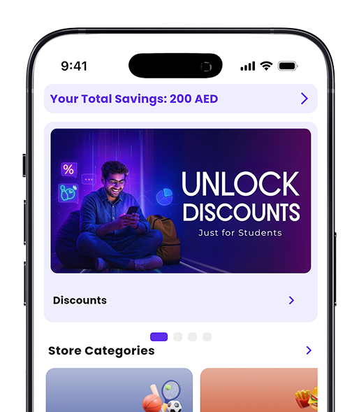 Save up to 50% on restaurants, cafes, gyms, cinema, shopping and everything you love in Dubai, Abu Dhabi & other Emirates. Exclusive student deals. Real rewards. Monthly mega prizes.